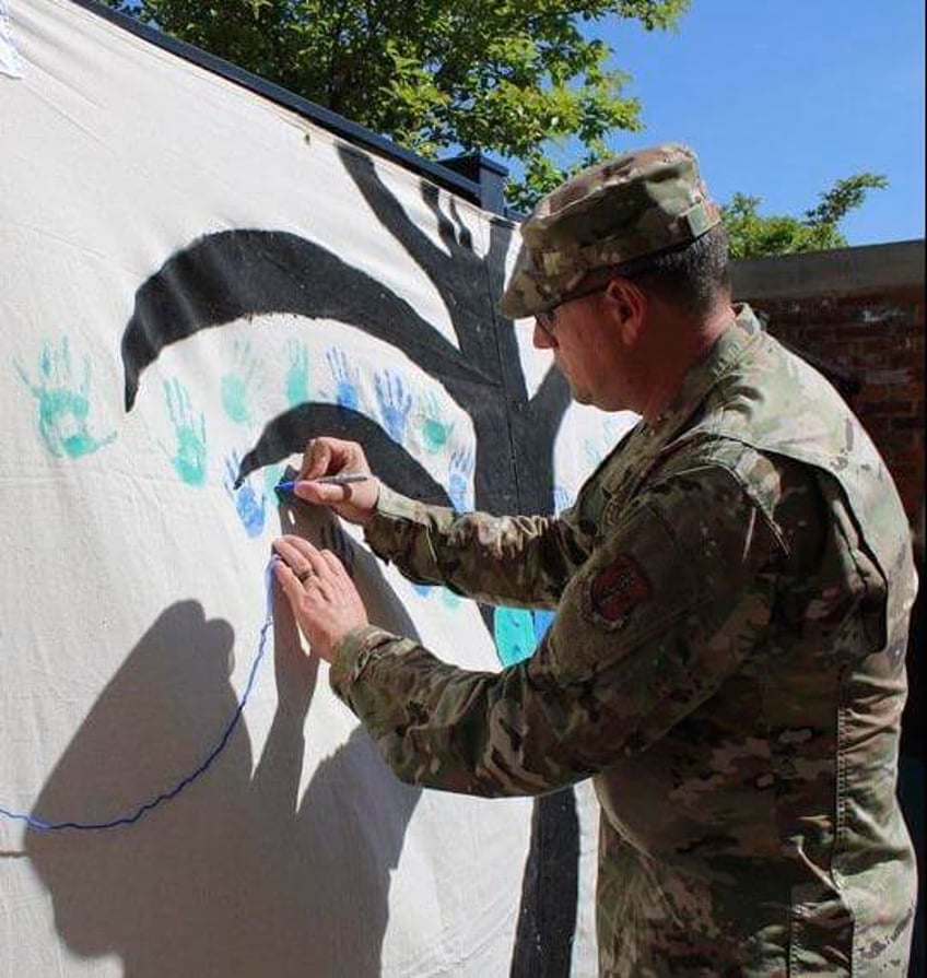The agencies kicked off the week Monday by displaying a canvas painted with blue and teal handprints at the Mississippi Arts + Entertainment Experience in Meridian.